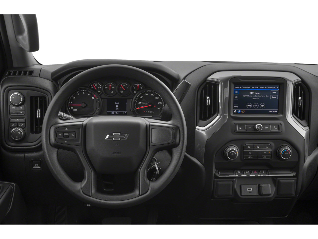 Custom Convenience Package: LED Cargo Area Lighting; EZ Lift Power Lock and Release Tailgate; Remote Vehicle Starter System; Electric Rear-Window Defogger. Preferred Equipment Group 2CX: Hitch Guidance; Rear 60/40 Folding Bench Seat (folds Up); Cloth Seat Trim; Bluetooth® For Phone; 170 Amp Alternator; LT275/65R18C MT BW Tires; 3.5" Diagonal Monochromatic Display; Trailering Package; Suspension Package; Front 40/20/40 Split-Bench Seat; Color-Keyed Carpeting Floor Covering; Power Front Windows with Passenger Express Down; Remote Keyless Entry; Front Rubberized Vinyl Floor Mats; Rear Rubberized-Vinyl Floor Mats; 2-Speed Transfer Case; Deep-Tinted Glass; Electronic Cruise Control; Power Rear Windows with Express Down; Performance Red Recovery Hooks; Manual Tilt Wheel Steering Column; Power Front Windows with Driver Express Up/down; High Gloss Black Grille; Locking Tailgate; 18" X 8.5" Black Painted Aluminum Wheels; Heavy-Duty Rear Locking Differential; Power Door Locks. Infotainment Package: OnStar and Chevrolet Connected Services Capable; SiriusXM Radio. 6