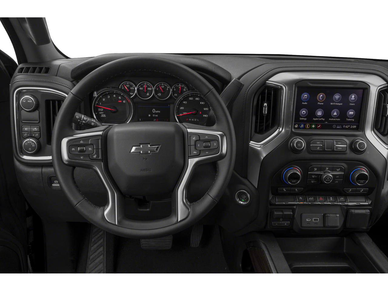Our dealership has already run the CARFAX report and it is clean. A clean CARFAX is a great asset for resale value in the future. See what's behind you with the back up camera on this vehicle. Apple CarPlay: Seamless smartphone integration for this model - stay connected and entertained on the go! The vehicle is pure luxury with a heated steering wheel. This Chevrolet Silverado keeps you comfortable with Auto Climate. This vehicle comes equipped with Android Auto for seamless smartphone integration on the road. Never get into a cold vehicle again with the remote start feature on this Chevrolet Silverado. Bluetooth® technology is built into it, keeping your hands on the steering wheel and your focus on the road. Quickly unlock the Chevrolet Silverado with keyless entry. The Chevrolet Silverado has four wheel drive capabilities. It has a V8, 5.3L high output engine. Maintaining a stable interior temperature in the vehicle is easy with the climate control system.